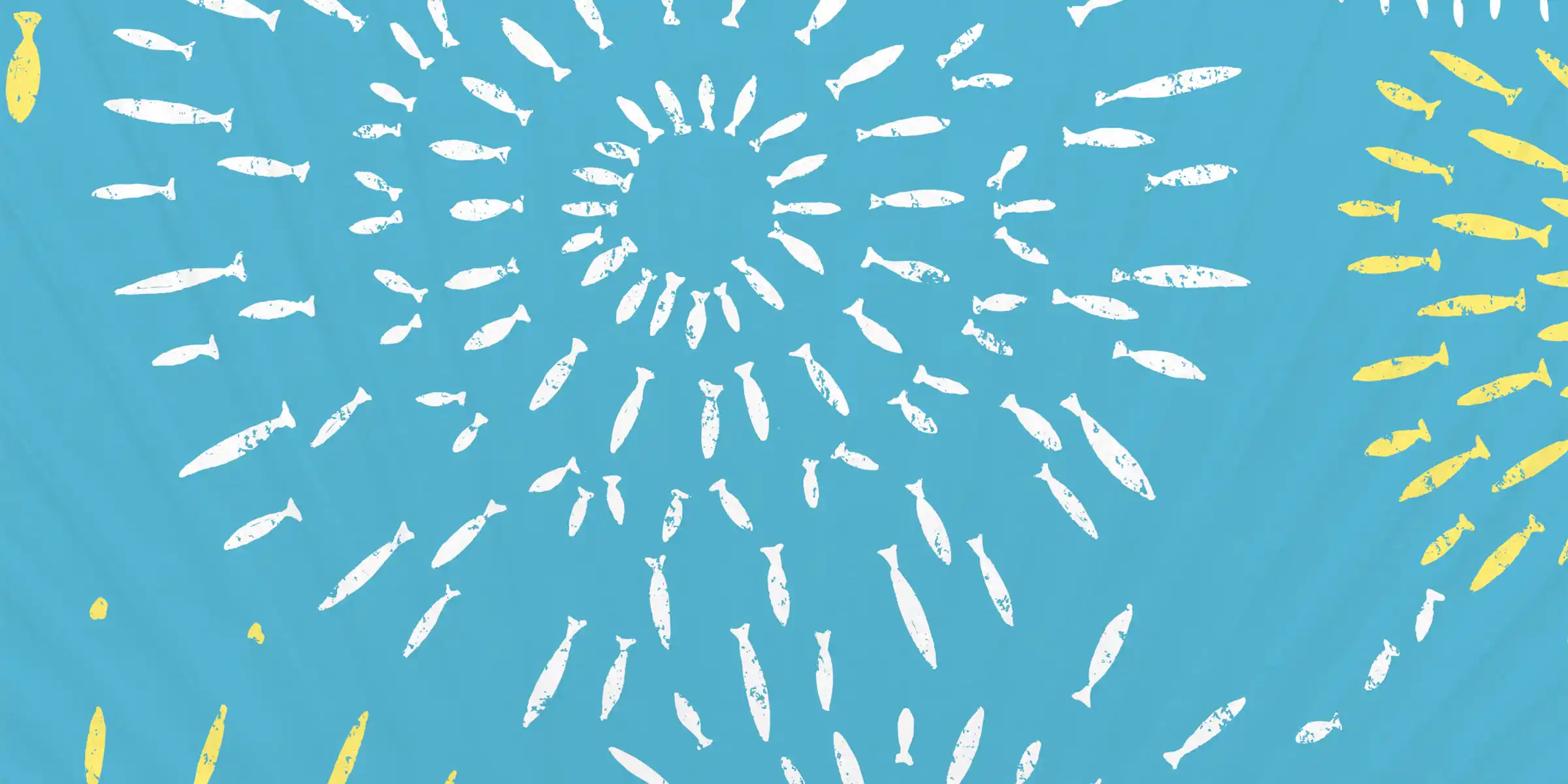 「瀬戸内国際芸術祭2013」に合わせて商品化された丸亀うちわのデザインです。美しい瀬戸内の海を舞台に、魚たちが元気に泳ぐ姿を花火のように表現しました。色は鮮やかな青と黄色の2種類を展開し、店頭に並んだときに印象的に映えるよう工夫しています。