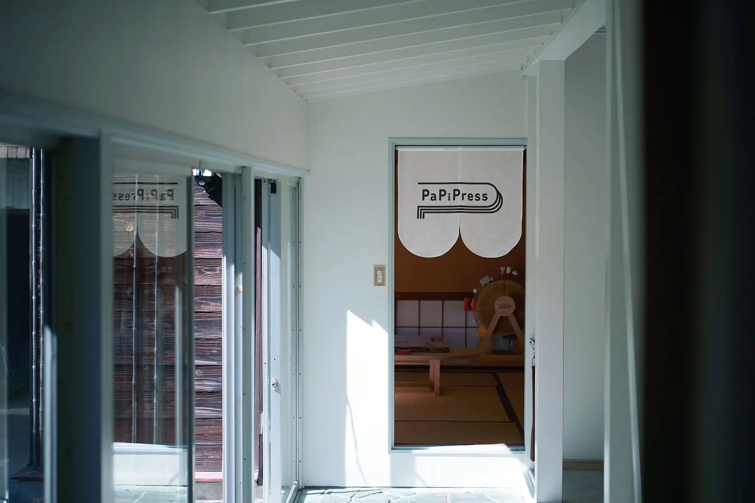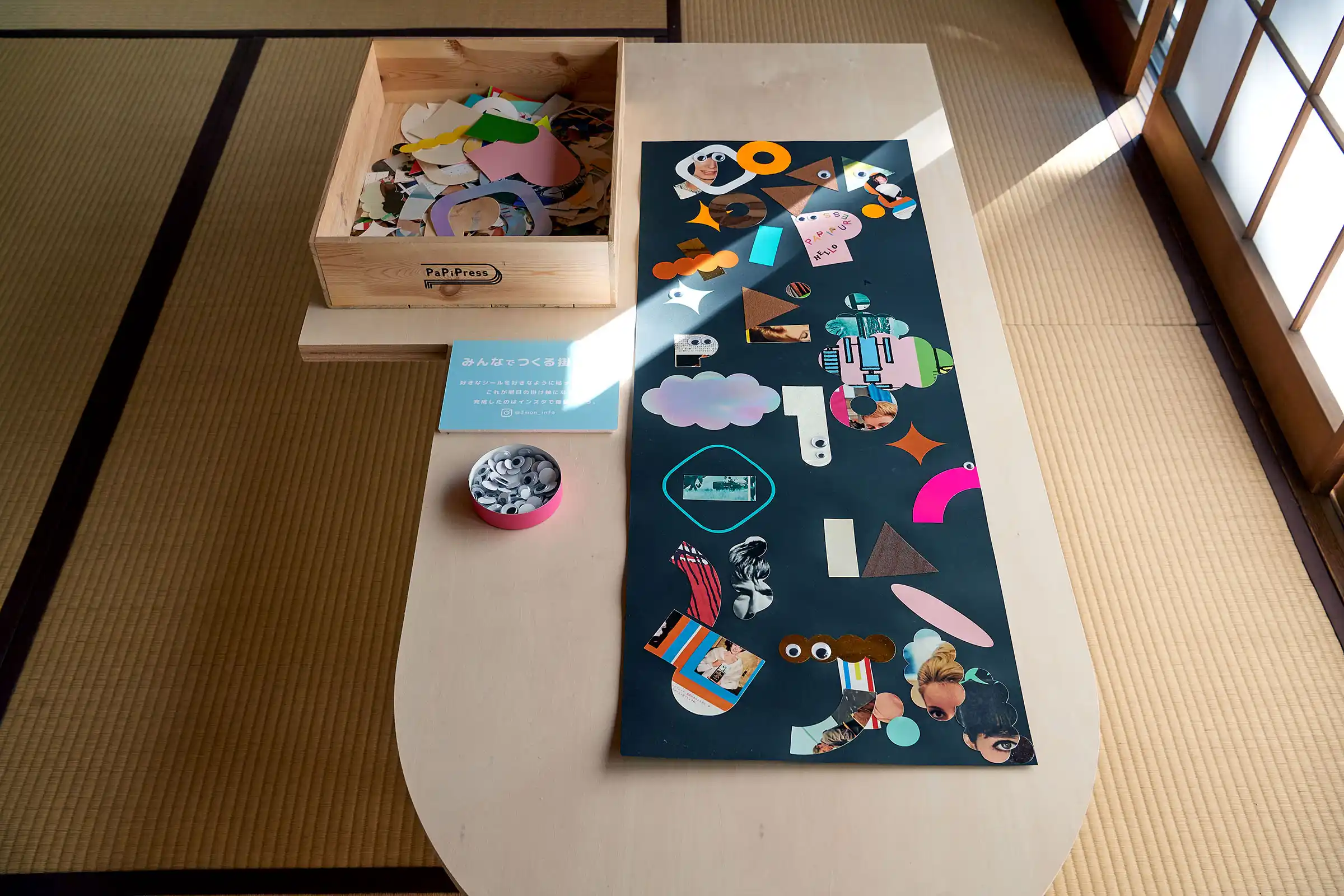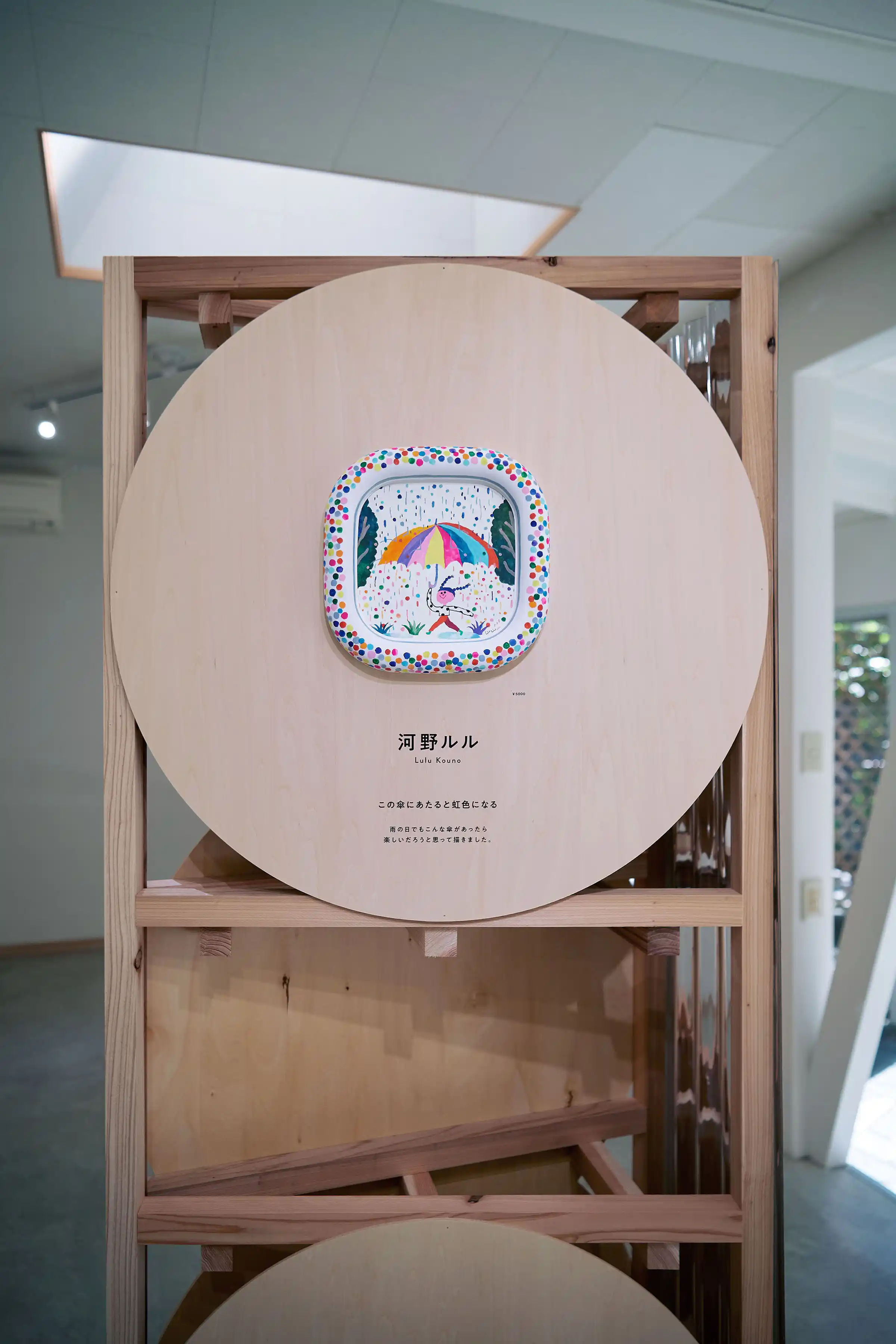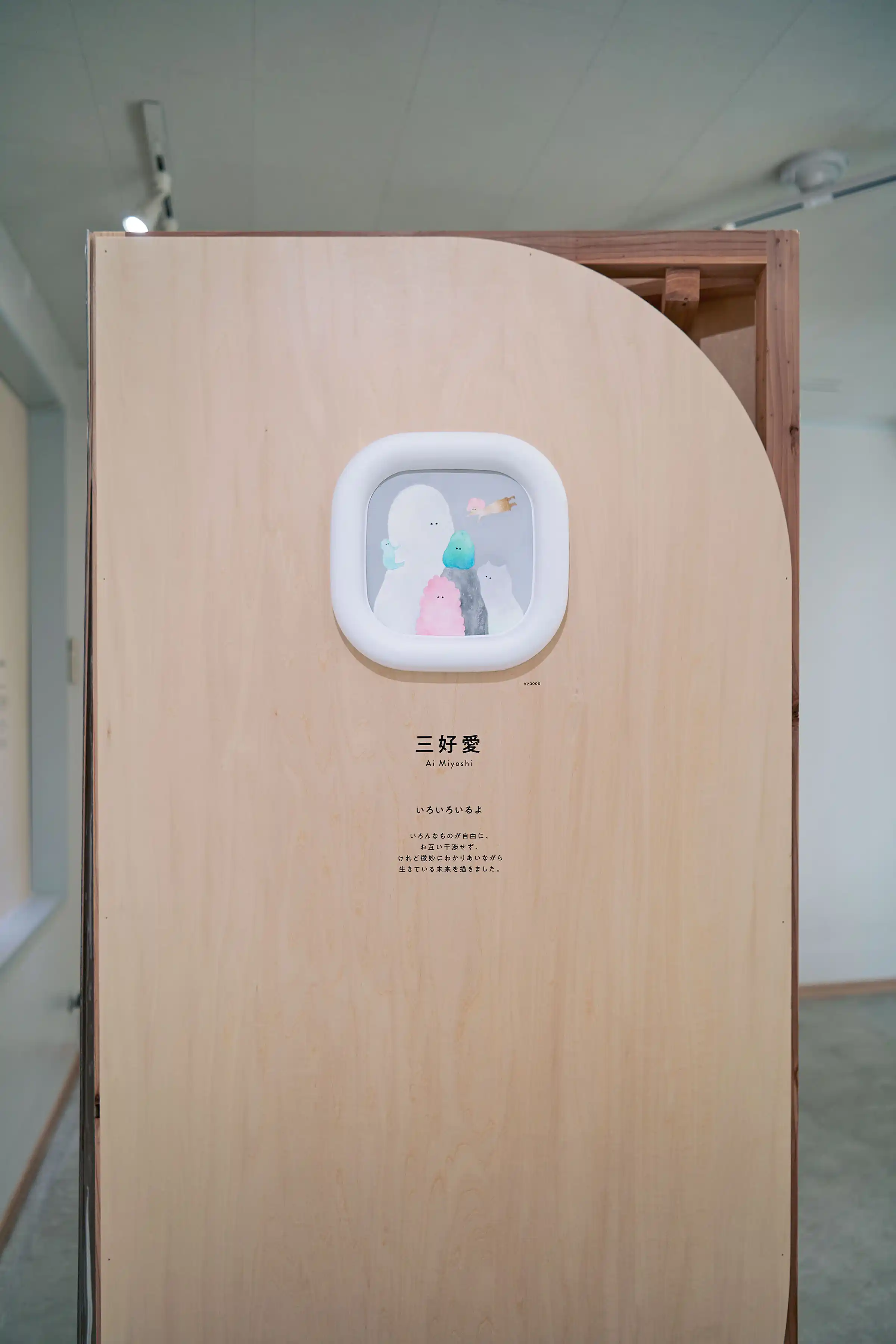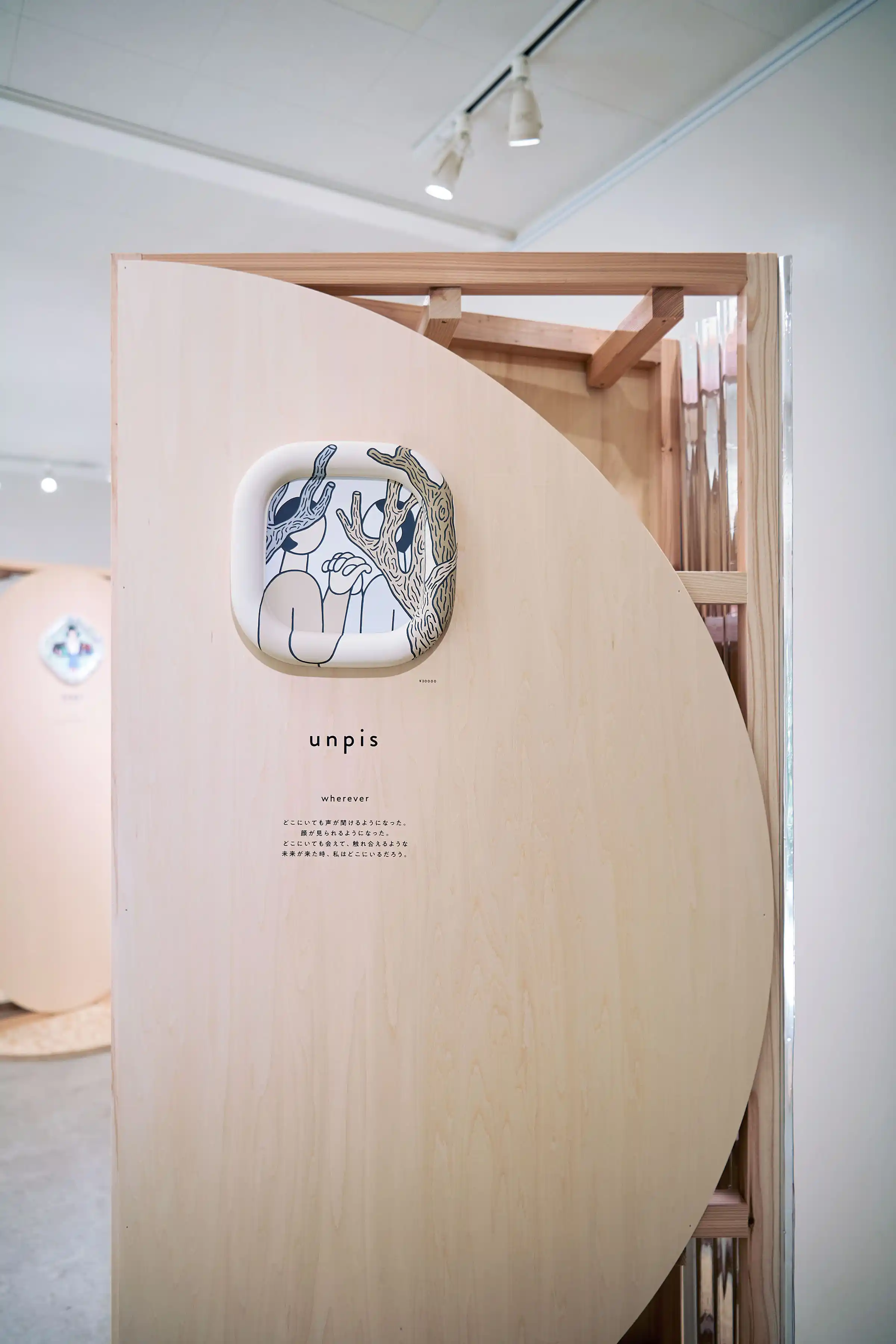 「環境にやさしいことが面白かったら、みんな喜んで取り組んでくれるだろうし、その先にはおもしろい未来が待っているはず!」という企画趣旨のもと、10人の作家さんに「おもしろい未来の日常」を描いてもらい、パピフレームに収めて展示しました。会場には和室や庭のある一軒家を選び、作品と静かに向き合える専用什器を設計しました。
