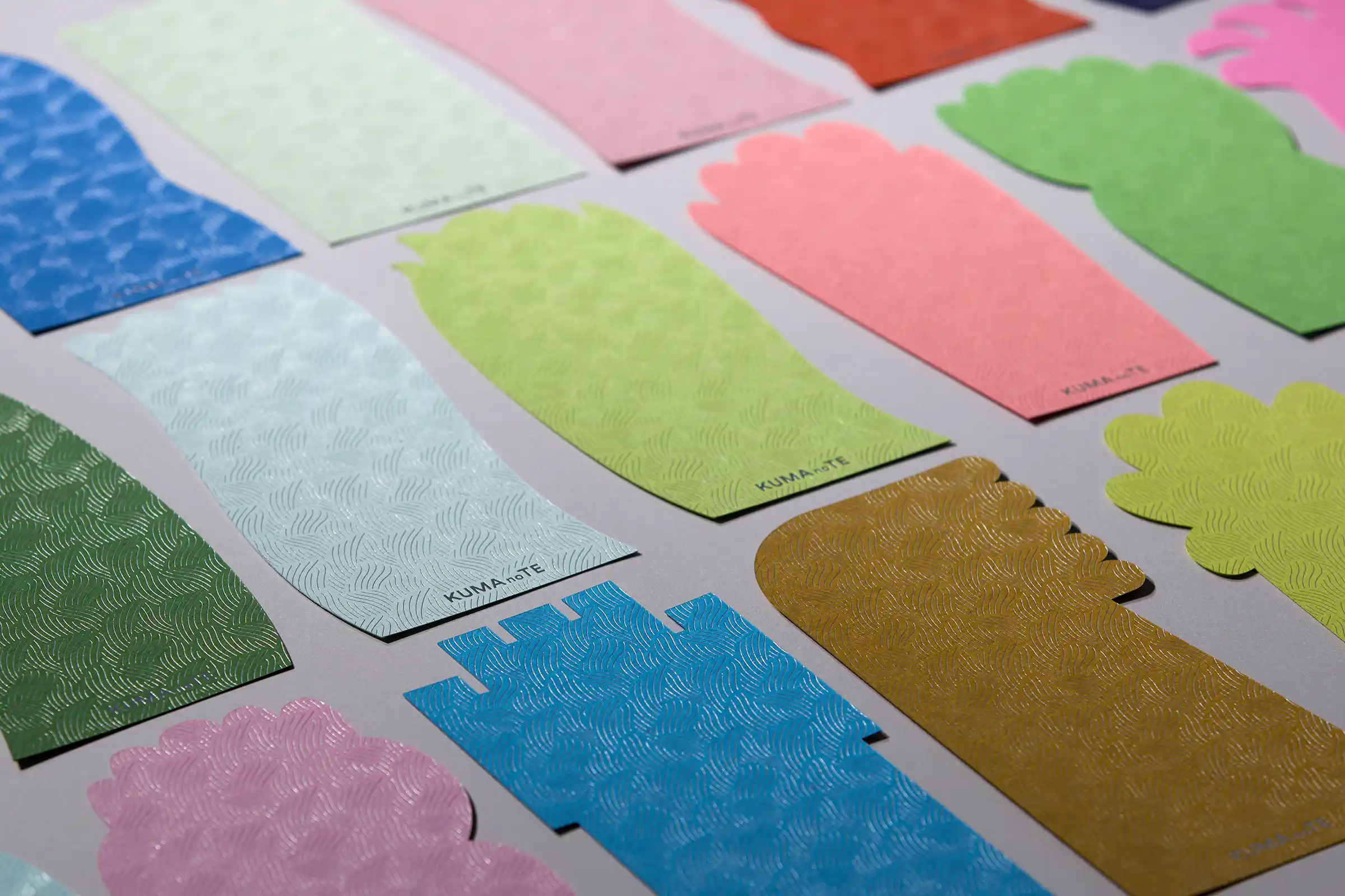 会社設立の挨拶を兼ねて制作したDMです。クマノテという名前を活かし、相撲の四十八手にちなんで48種類の熊の手シルエットをカードに展開。全60色で制作し、届く人によって異なる色と柄を楽しめるようにしました。多彩なデザインに、会社の雰囲気や「あの手この手でいろいろと挑戦していく」という意気込みを込めています。