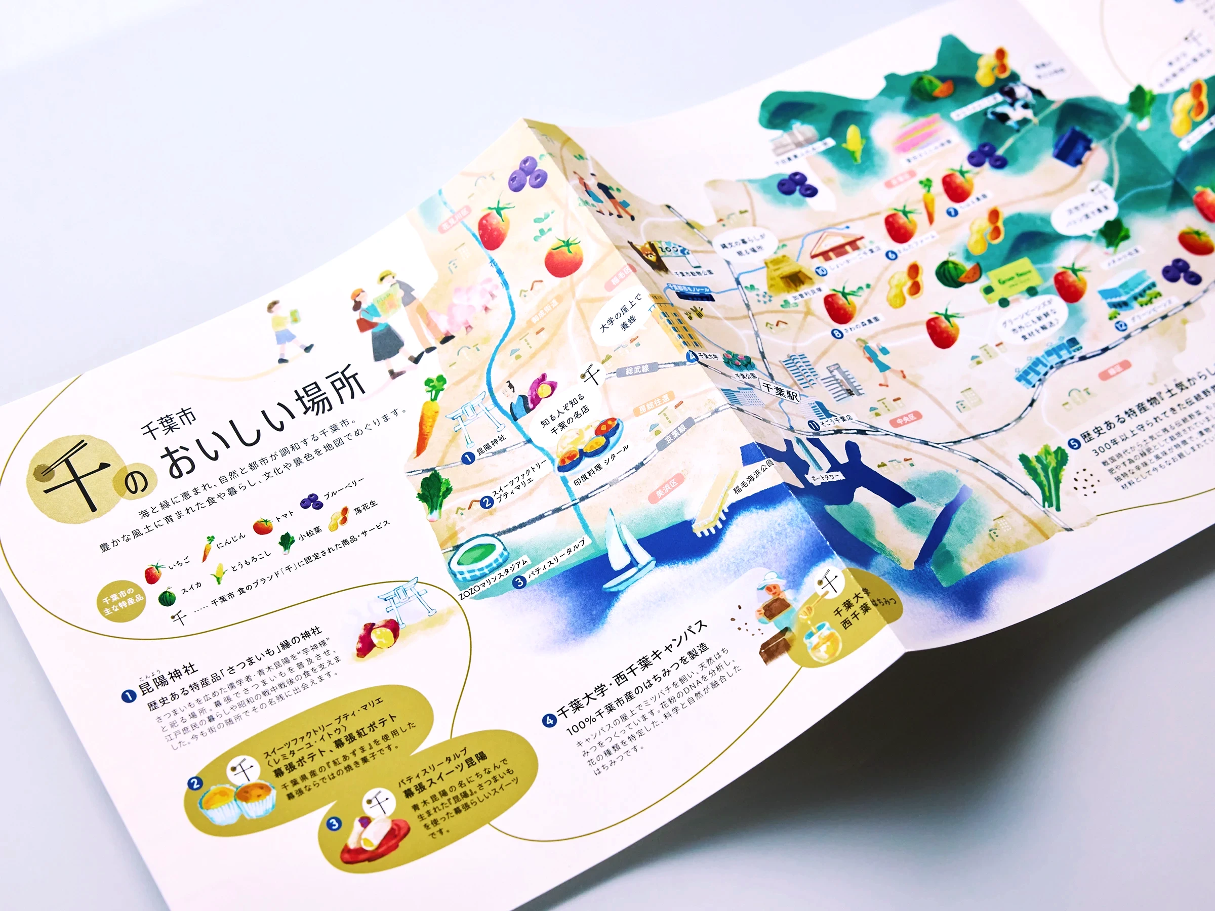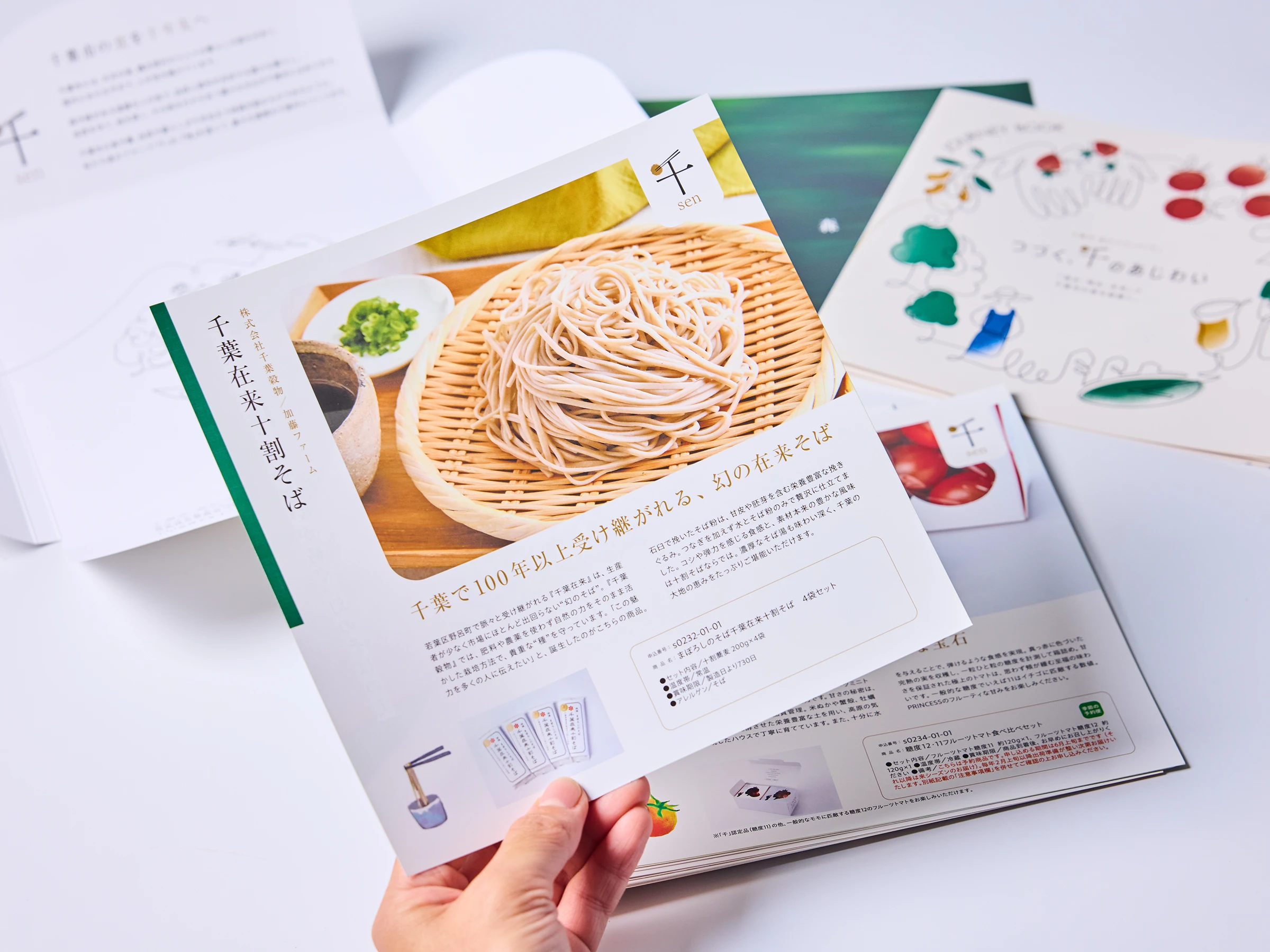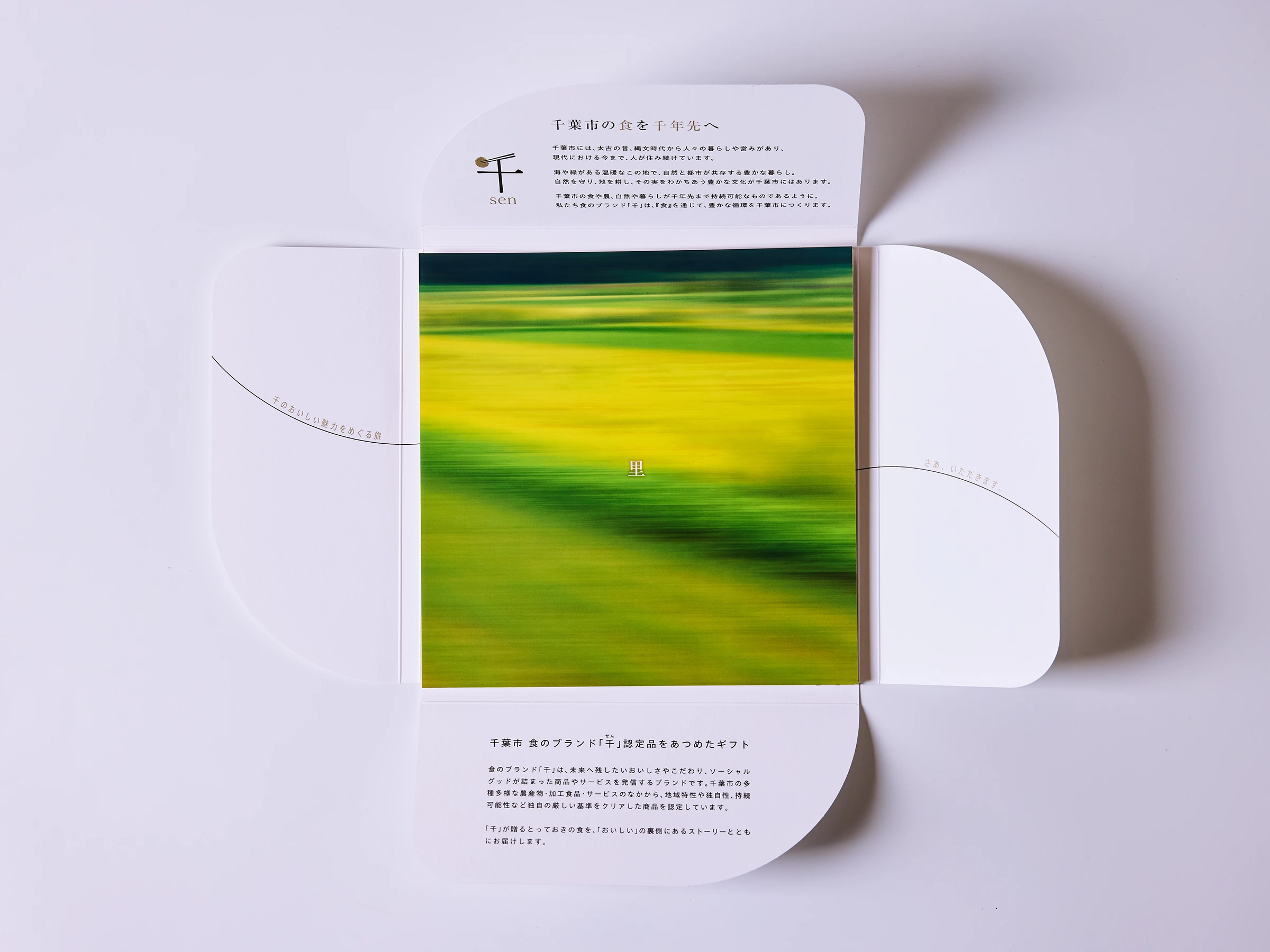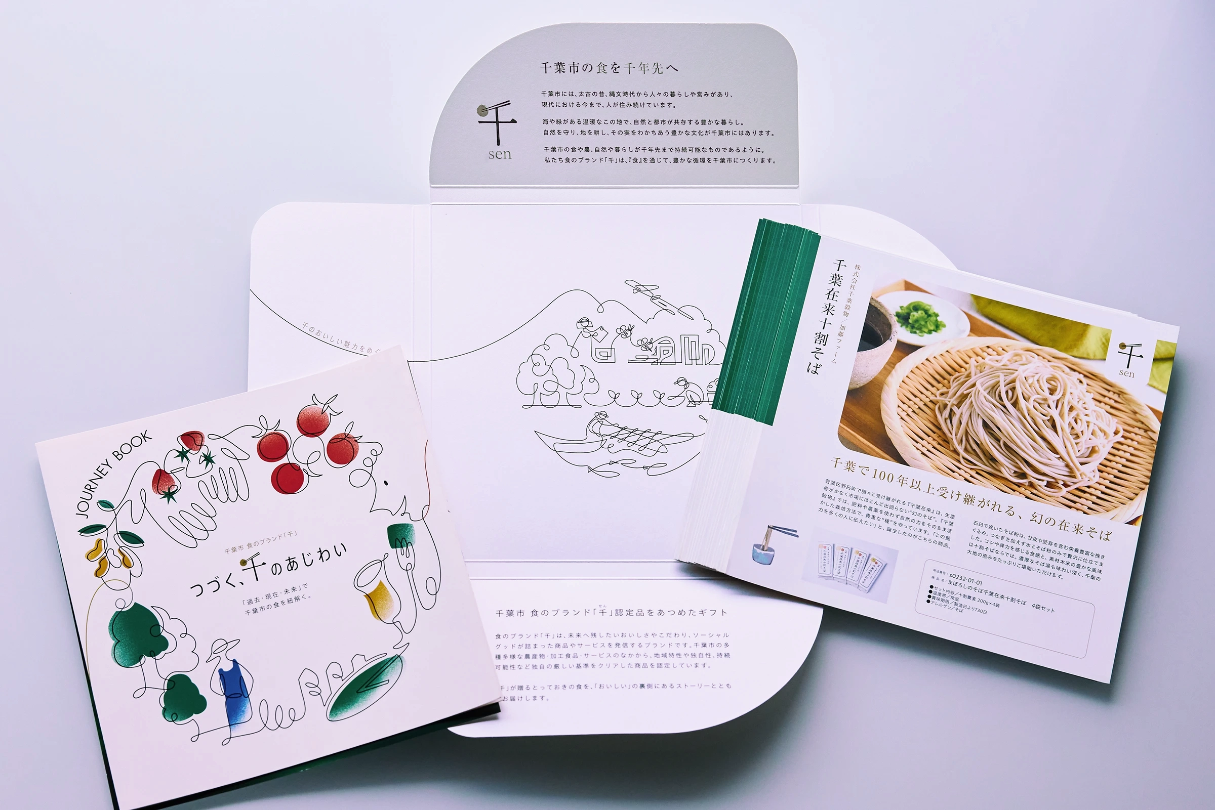 千葉市 食のブランド「千」が認定する産品をまとめたカタログギフトです。千葉市のおいしい魅力を“旅するように巡れる”構成を目指し、地域の風景や食文化、生産者の想いが自然と伝わる紙面づくりを意識しました。商品紹介はカードタイプで展開し、畑や工房の風景など、食の背景にある物語を感じられるビジュアルとテキストを組み合わせてデザイン。さらに、地域の歴史や食文化をまとめたコンセプト冊子も添え、千葉市の豊かさを多角的に伝える構成としました。カタログを開く体験そのものが「千葉市の魅力に触れる時間」になることを目指したデザインです。